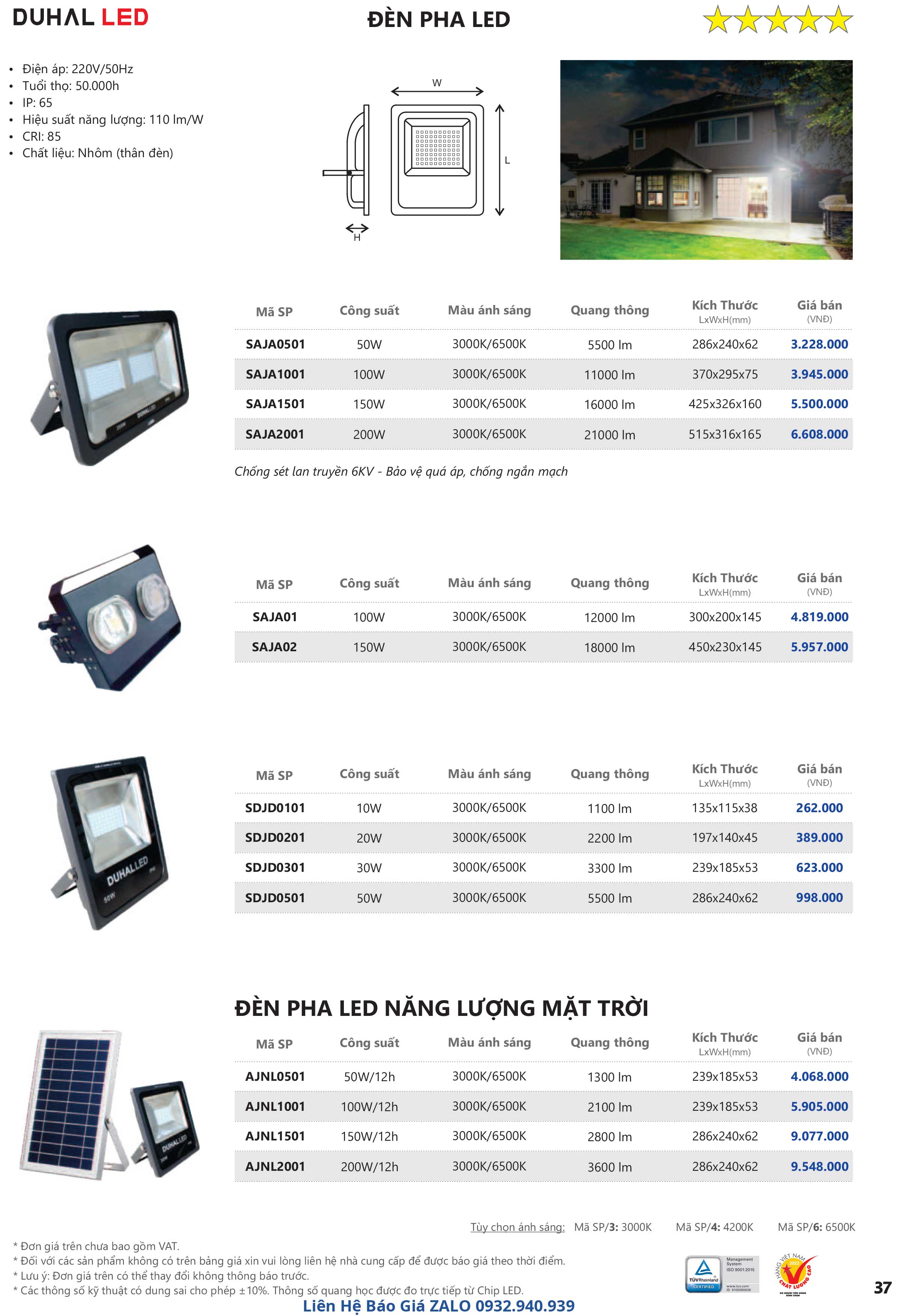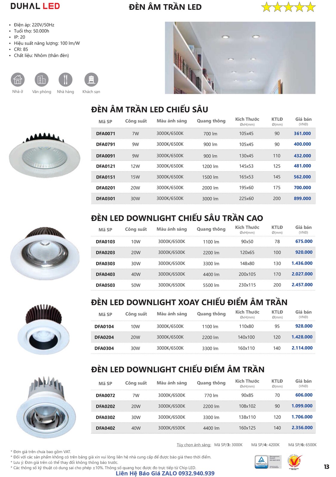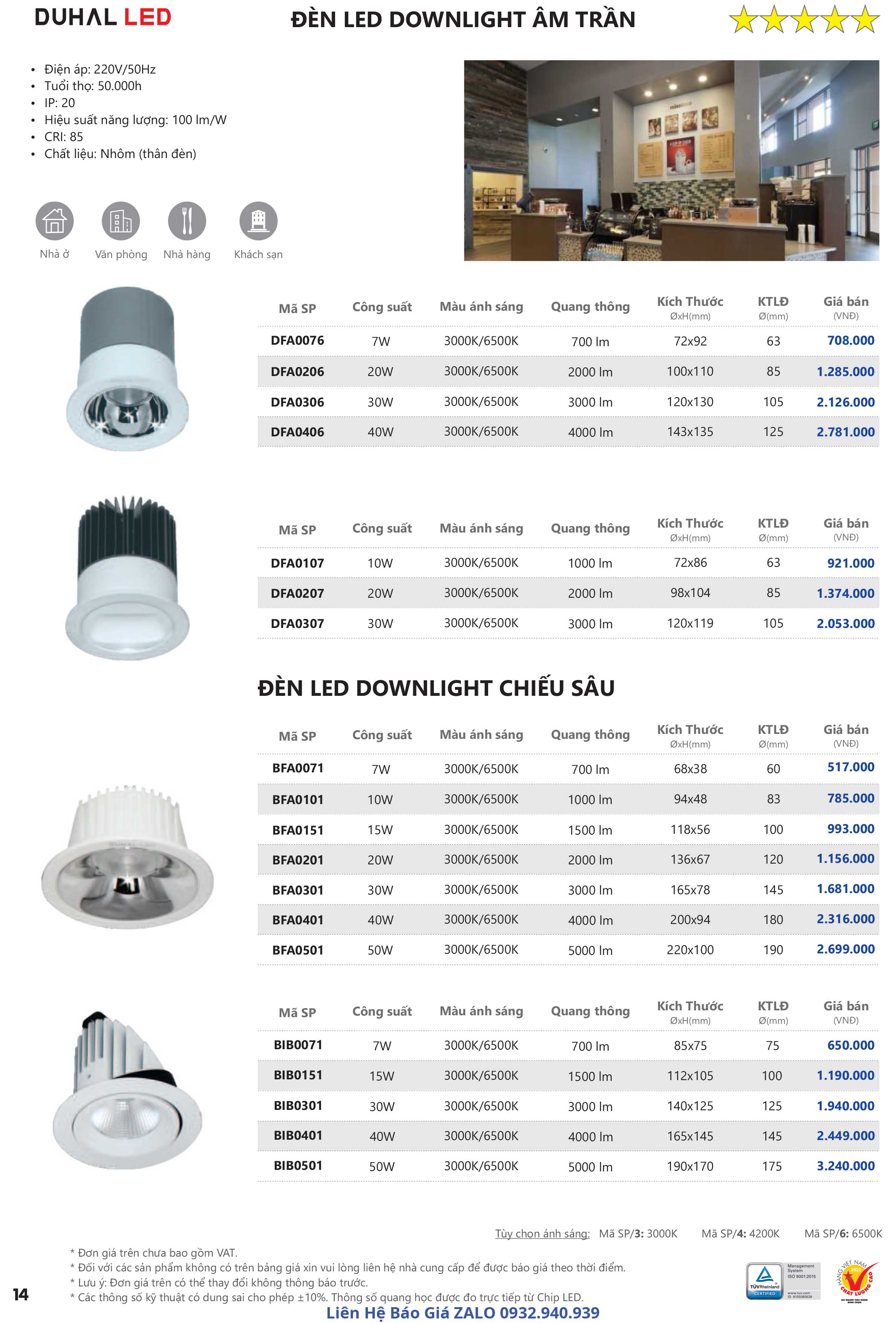 Download Bảng Giá Đèn LED DUHAL A - PDF