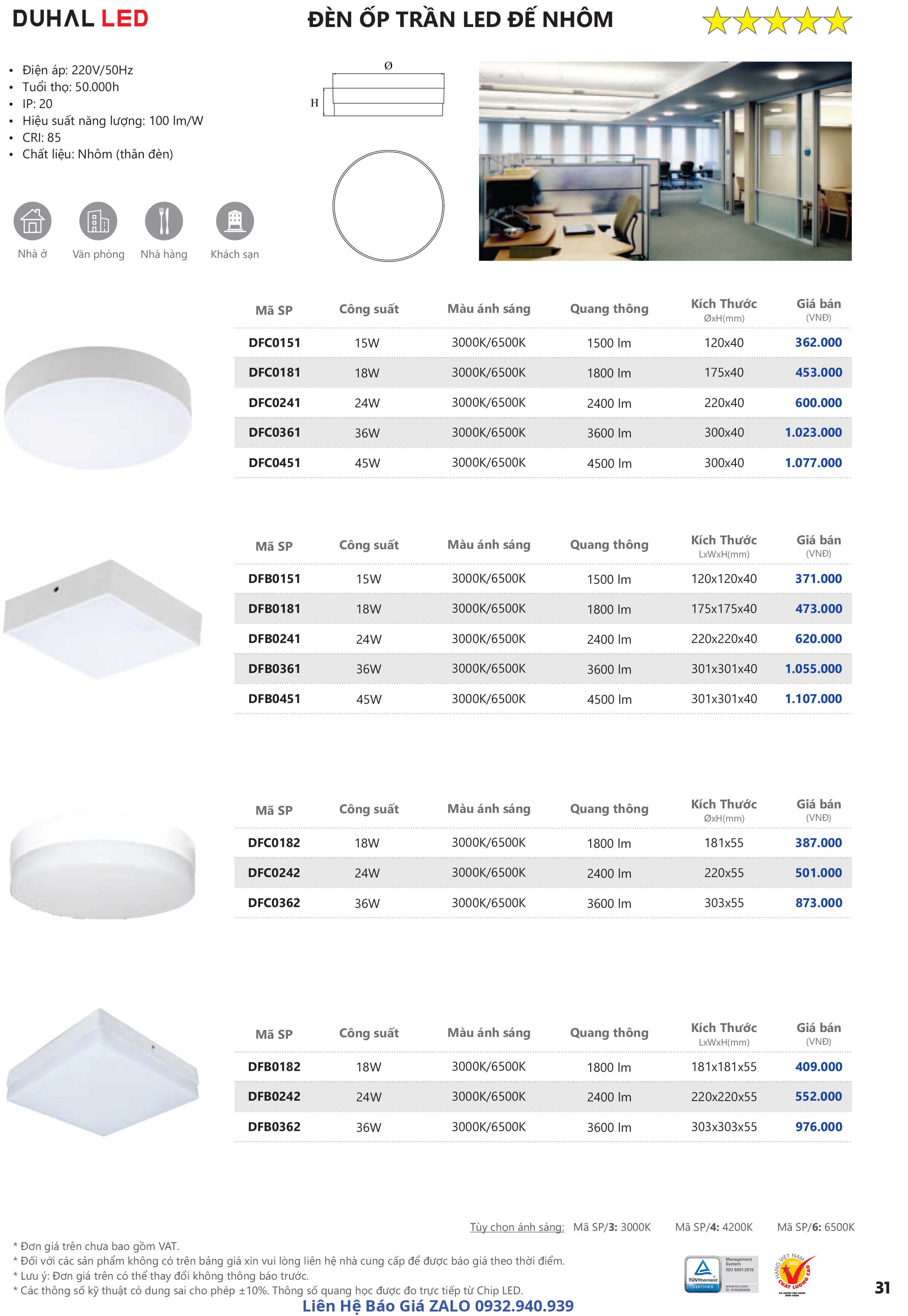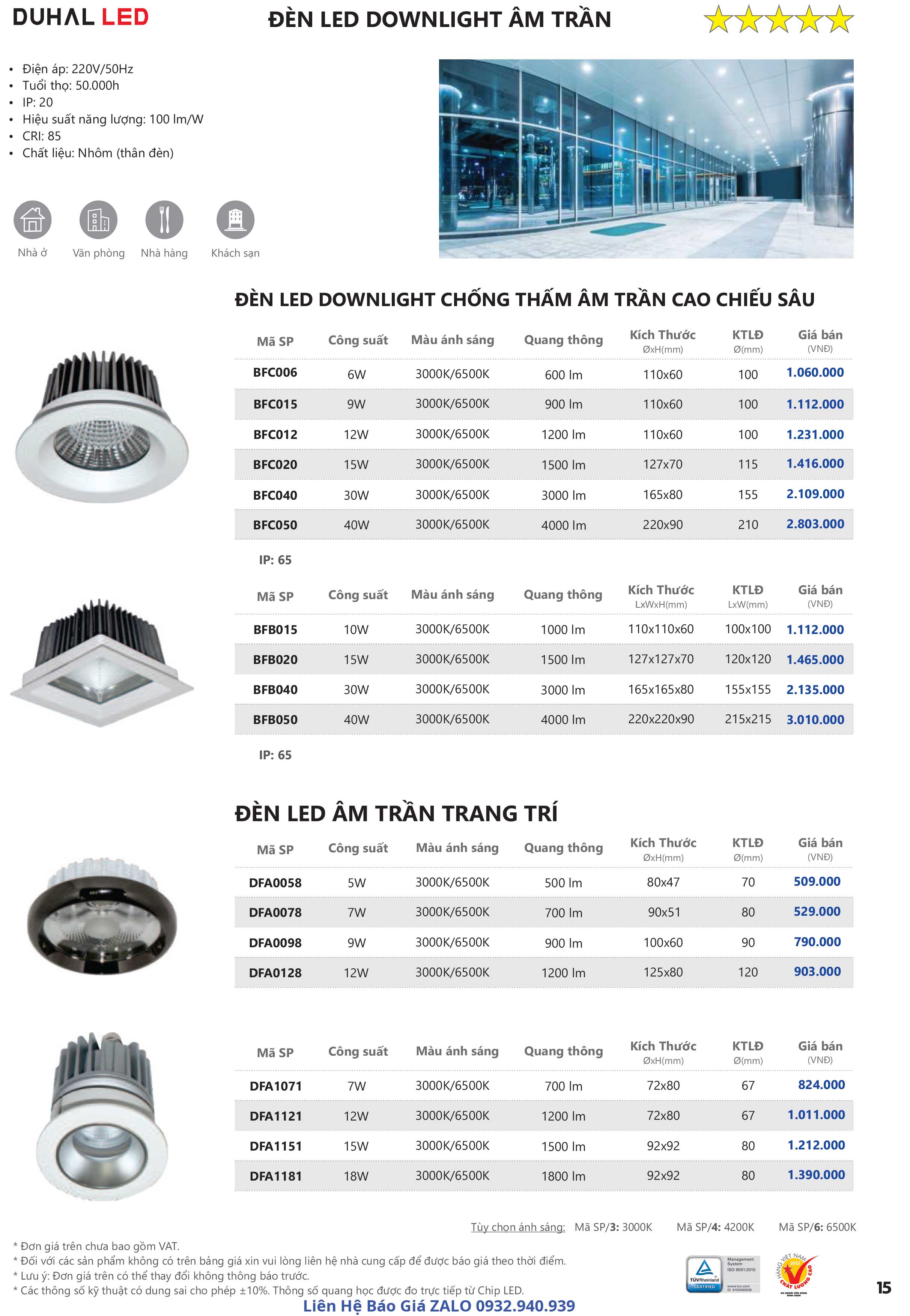 Download Bảng Giá Đèn LED DUHAL C - PDF