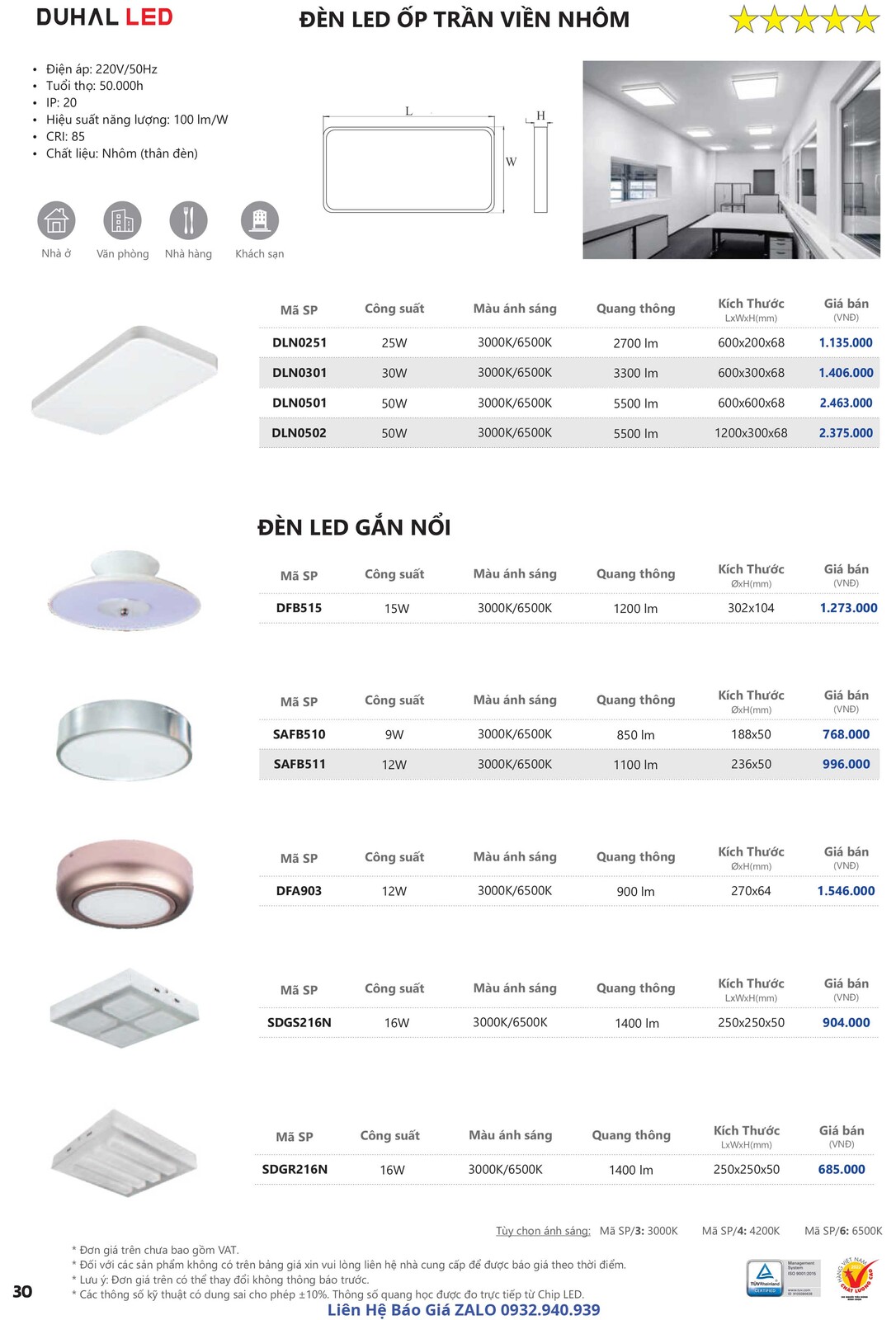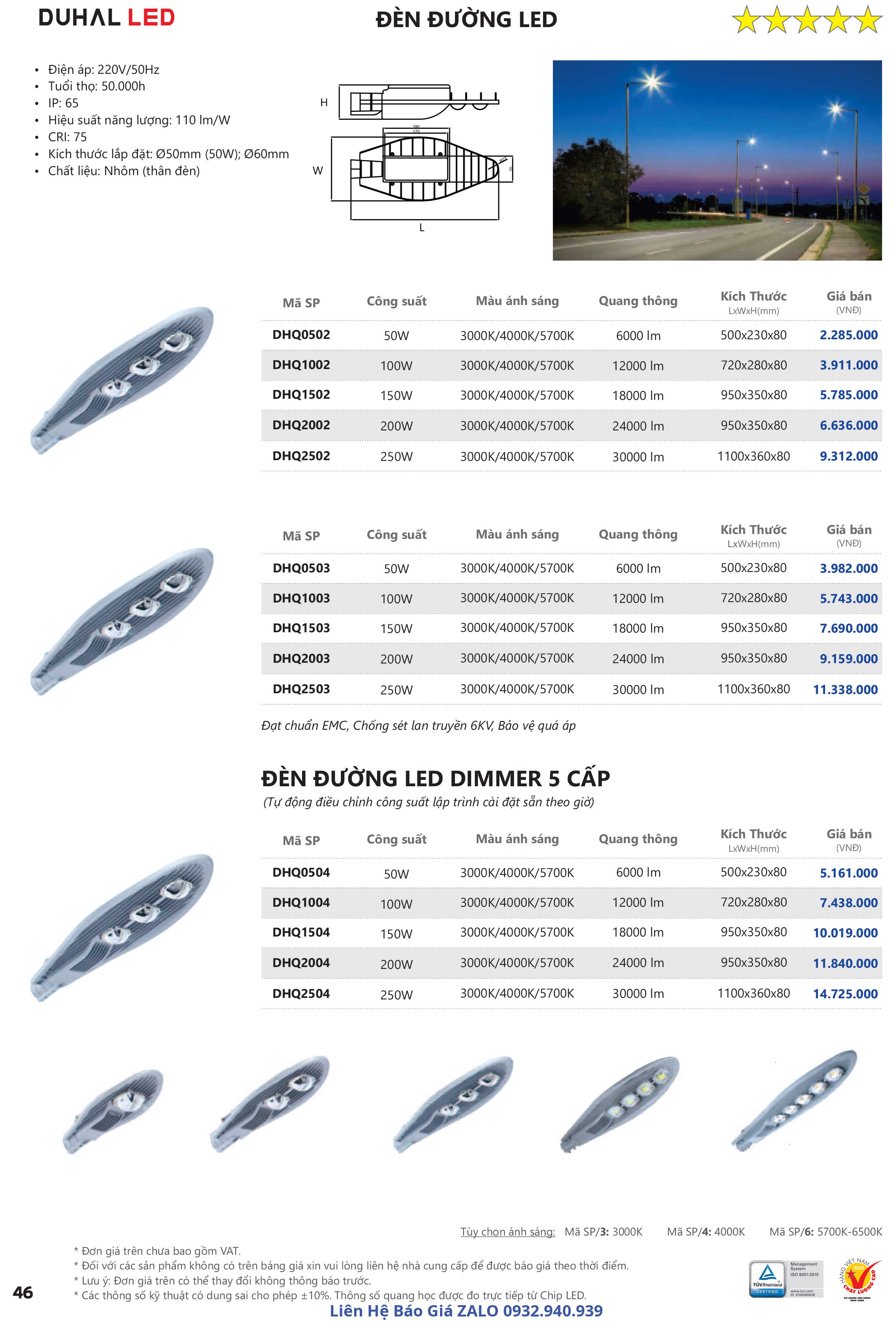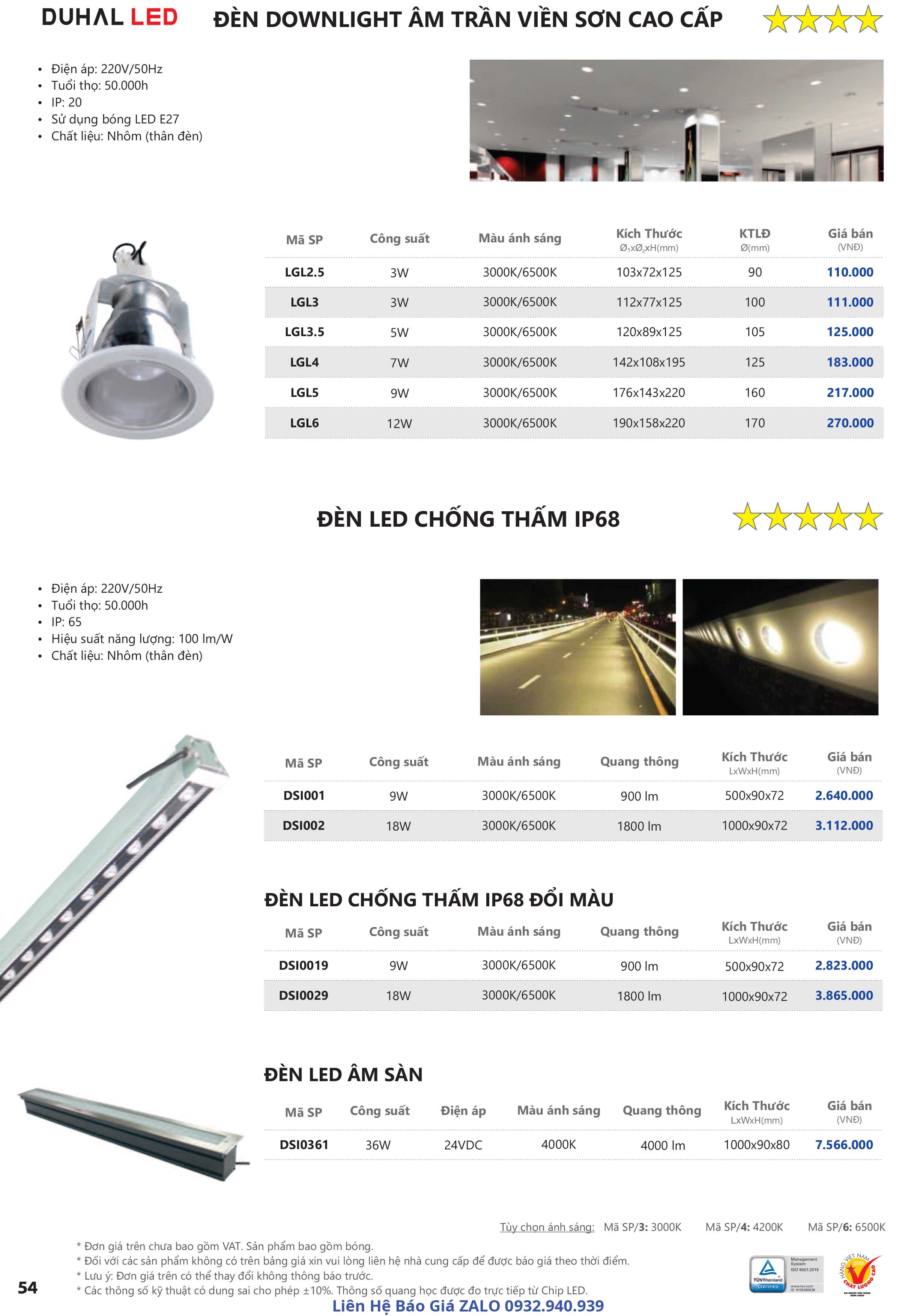 Download Bảng Giá Đèn LED DUHAL B - PDF