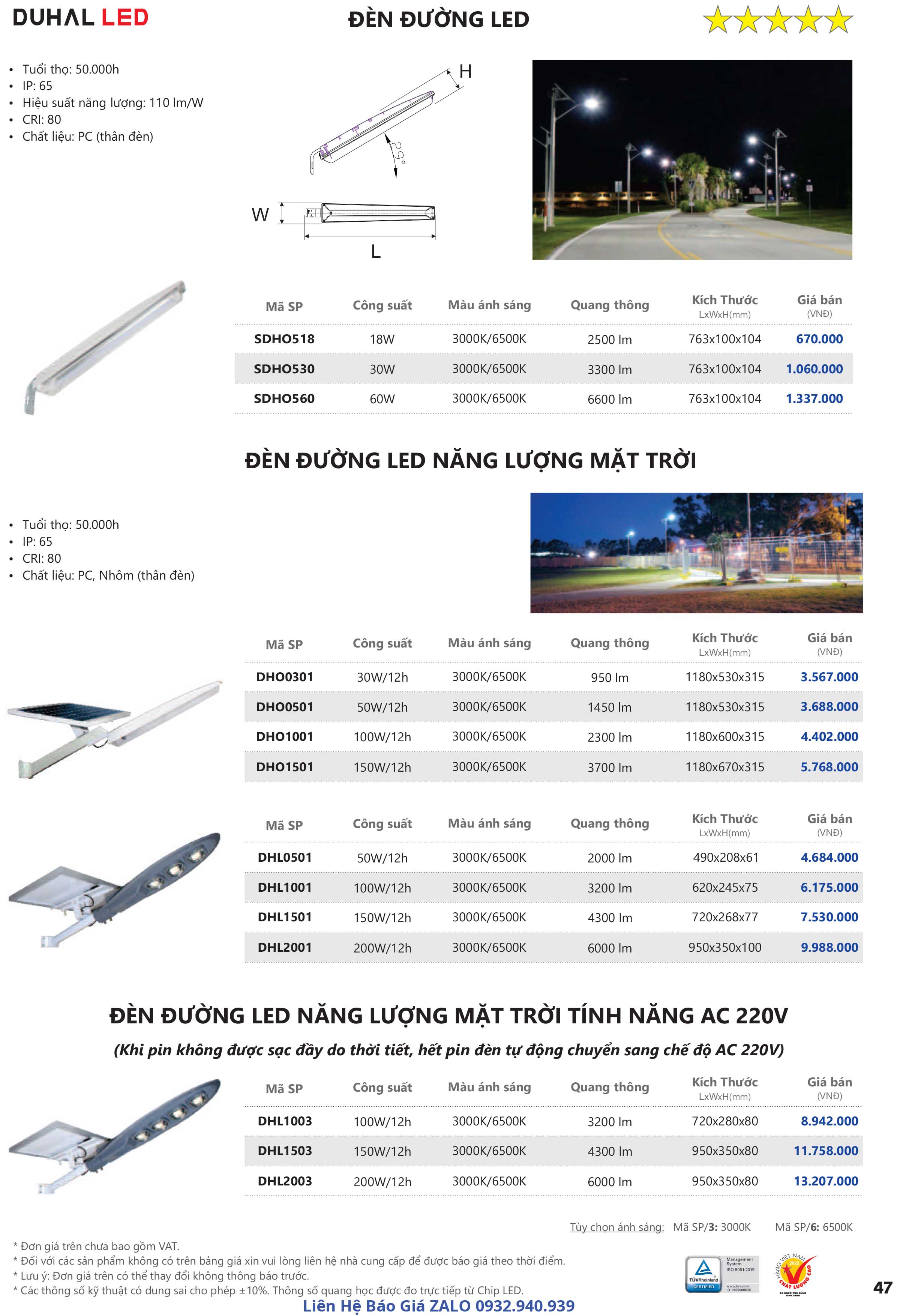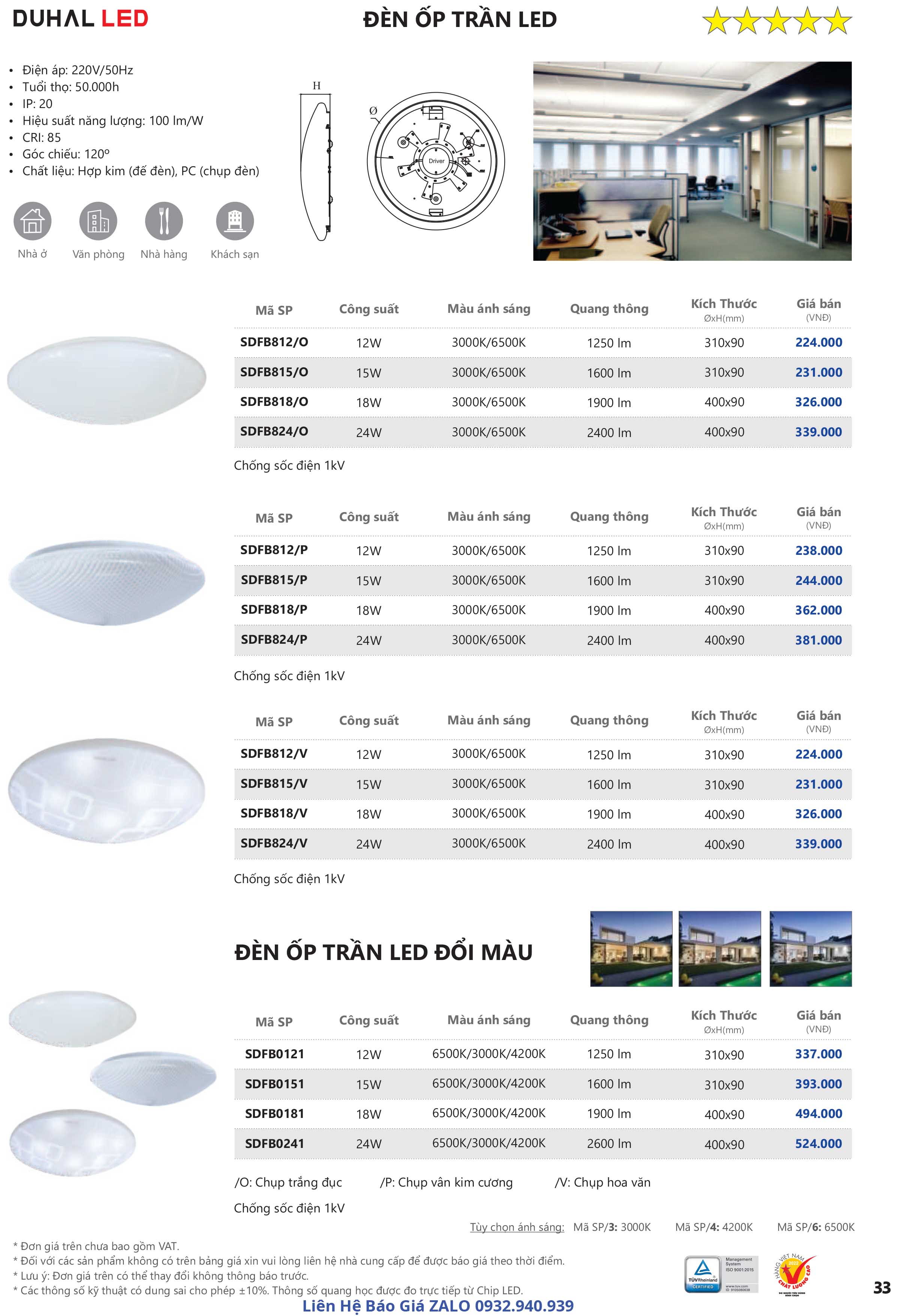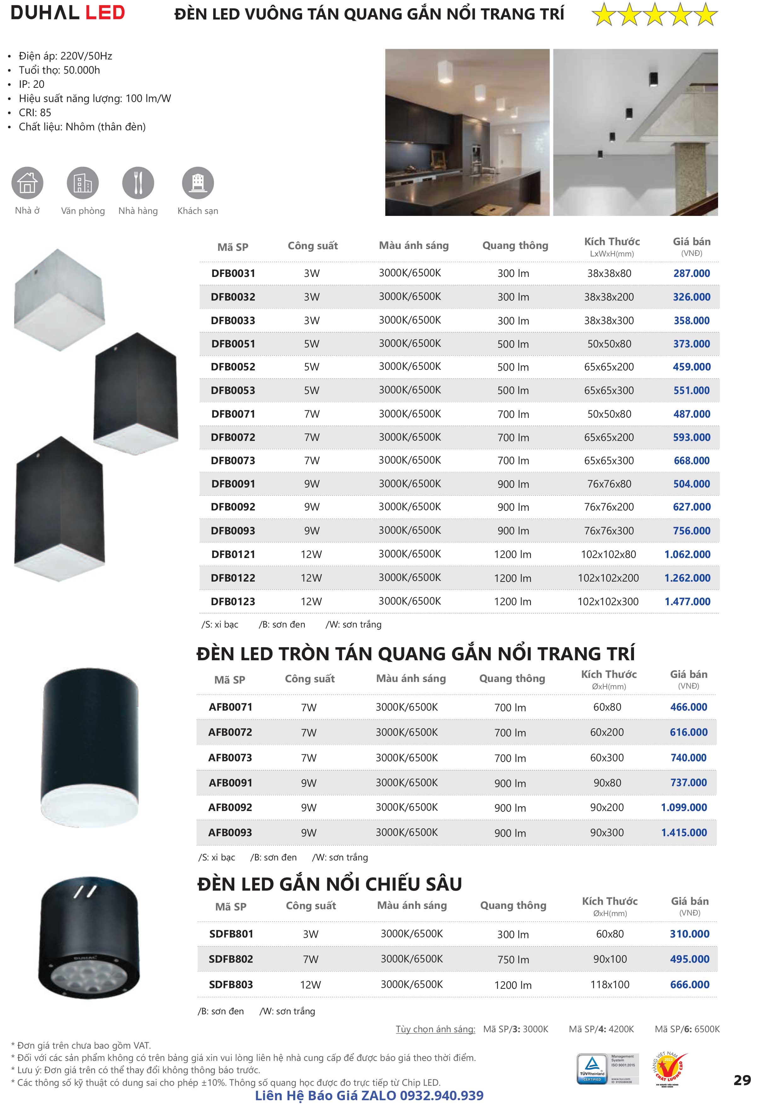 Download Bảng Giá Đèn LED DUHAL B - PDF