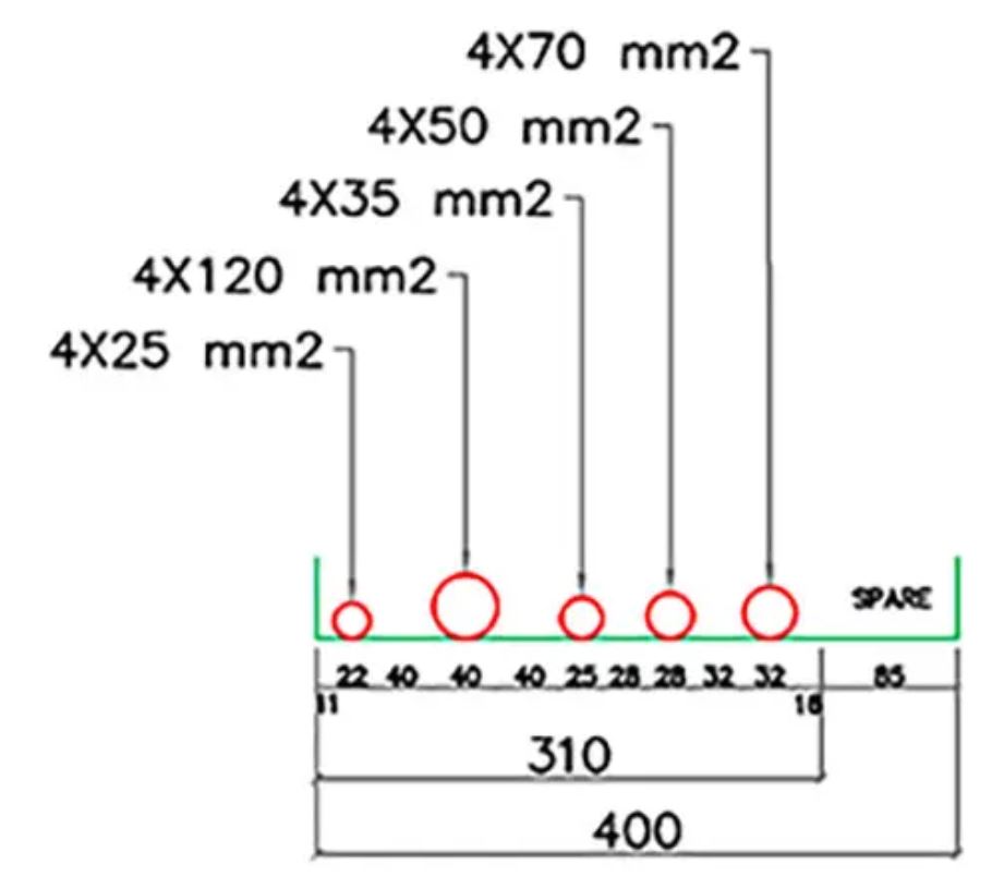 Kích thước ban đầu = 510mm. Kích thước cuối cùng = 510 x (1+30%) = 660mm. Chúng ta làm tròn giá trị thành giá trị tiêu chuẩn lớn hơn gần nhất bằng 700mm. Khi có dây trung tính? Bởi vì các dây dẫn trung tính trong mạch 3 pha và dây nối đất thường không mang dòng điện nên chúng ta không đưa các dây dẫn này vào để xác định kích thước máng cáp.